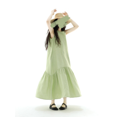 复述人丝亚麻小清新绿色无袖连衣裙干爽挺括感浅葱绿鱼尾背心裙女