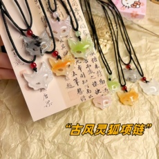 天然绿幽灵九尾狐吊坠桃花九尾狐狸项链男女闺蜜饰品毛衣链情侣款