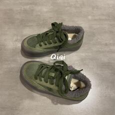 七七主人家 女鞋冬季保暖百搭棉鞋女厚底加绒鞋子女墨绿色板鞋女