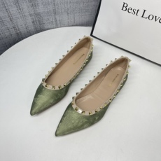 国风绿色尖头铆钉平底鞋2025春秋法式气质浅口搭配裙子软底单鞋女