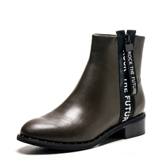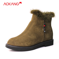奥康断码清仓冬季款保暖女短靴内增高女靴短靴绿色女鞋