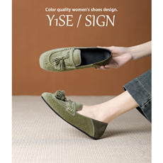 小众绿色流苏乐福鞋女2026春季新款法式平底豆豆鞋一脚蹬复古单鞋