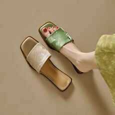 新中式国风平底方头凉拖鞋女夏外穿气质时尚仙女高级感绿色一字拖