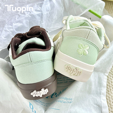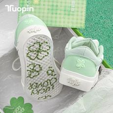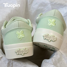 鮀品四叶草板鞋女款2026新款原创百搭绿色鞋子厚底休闲透气帆布鞋