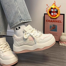 加绒板鞋女厚底女鞋春秋百搭爆款小众休闲设计鞋子女粉色绿色圆头