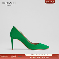 LK BENNETT绿色羊皮绒面高跟鞋女2024新款细跟尖头8.5cm真皮单鞋
