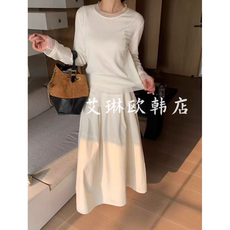 本期bi入款!~网纱拼接长袖打底衫女秋新款气质简约纯色羊毛上衣