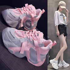 4CM增高~减震厚底网面透气登山老爹鞋女夏季户外徒步运动鞋