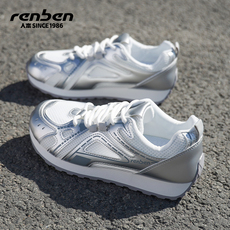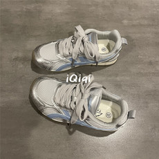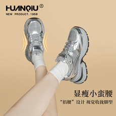 银色老爹鞋女2025春夏季新款厚底增高百搭网面透气超火运动休闲鞋