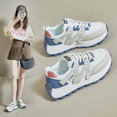 爆款厚底老爹鞋女2025夏季新款网面透气运动鞋系带超火百搭小白鞋