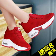 内增高女鞋红色红鞋增高鞋休闲鞋子透气网面跳舞运动鞋旅游鞋波鞋