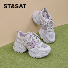 TATA他她女鞋秋季休闲百搭老爹鞋厚底增高网面透气运动鞋HAA01BM4