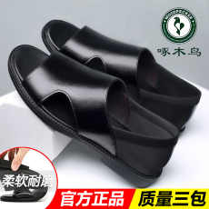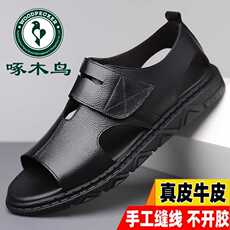 啄木鸟2025夏季新款凉鞋男款休闲软底防滑沙滩鞋青年罗马凉皮鞋男