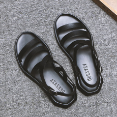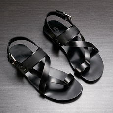 夏季复古罗马凉鞋男真皮休闲凉拖鞋外穿黑色头层牛皮沙滩鞋男鞋潮