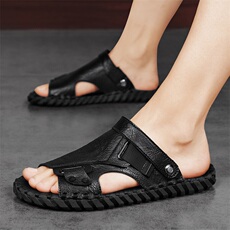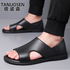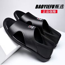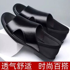 捡漏清仓特价男士真皮露趾沙滩鞋防滑软底罗马鞋商务休闲凉鞋子男