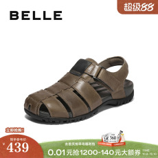 百丽男鞋休闲沙滩包头猪笼凉鞋2025夏季牛皮罗马爸爸凉鞋8RM01BL5