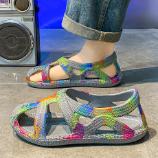 凉鞋男女夏季2025新款包头软底沙滩鞋潮流洞洞编织情侣休闲罗马鞋