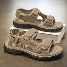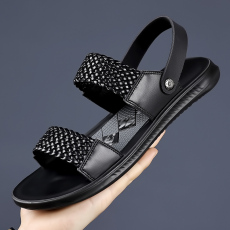 夏季新款时尚休闲软皮沙滩鞋男真皮防滑防臭韩版青年罗马皮凉鞋潮