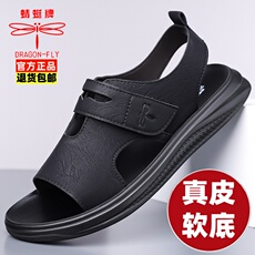 蜻蜓牌凉鞋男真皮夏季2024新款休闲软底防滑沙滩鞋潮流罗马凉皮鞋