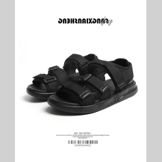 @方先生 小众原创夏季魔术贴黑色凉鞋男ins露指罗马沙滩鞋一字拖