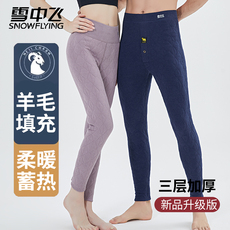 雪中飞羊毛保暖裤女中老年人加绒加厚棉裤高腰秋裤夹棉衬裤线裤男