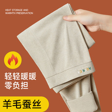 羊毛蚕丝秋裤女加厚加绒德无痕发热高腰保暖裤女羊毛棉裤打底裤冬