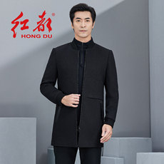 红都男士毛呢大衣中长款立领时尚绅士商务休闲中青年羊毛呢外套
