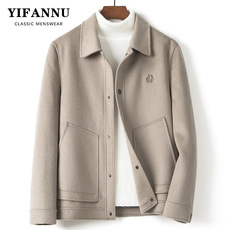 手工羊毛男式夹克秋冬翻领工装短款青年轻奢商务双面呢休闲外套潮