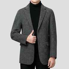 高级感西装领手工双面呢外套男秋冬中青年商务保暖休闲羊毛风衣潮
