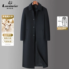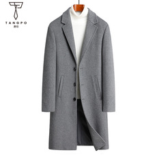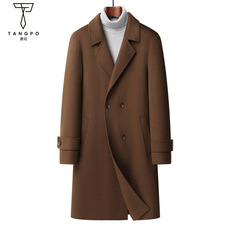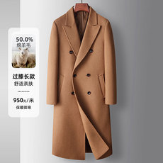 男式大衣秋冬过膝长款100%羊毛双排扣风衣青年商务双面呢保暖外套