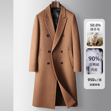 男式大衣秋冬长款过膝双排扣羊毛风衣青年白鸭绒内胆保暖毛呢外套
