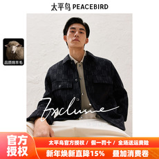 太平鸟男装格纹羊毛夹克冬新款拼接双面呢外套休闲行政茄克青年