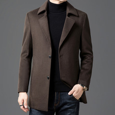 翻领羊毛呢大衣外套男双面呢休闲新品中青年爸爸装秋冬季厚款抗寒