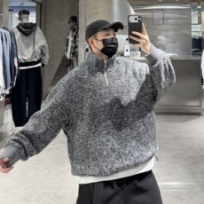 日言潮牌冬季高领半拉链外套男日系复古羊毛呢针织宽松青年外套潮
