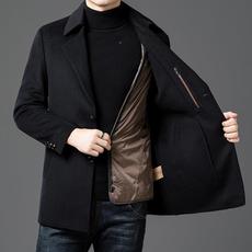 冬季毛呢大衣男羽绒款羊毛呢中青年双面羊绒尼妮外套男士呢子大衣