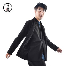 玄笙断码清仓青年男士短款羊毛呢子大衣假两件中国风外套冬季上衣