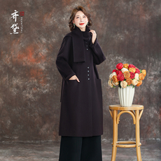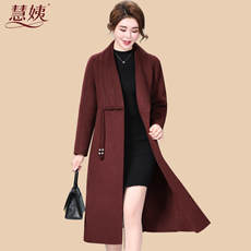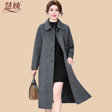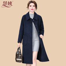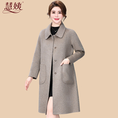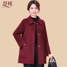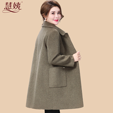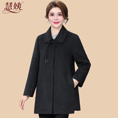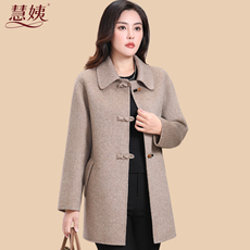 齐黛高端纯羊毛双面呢大衣女妈妈秋冬新款圆领中长款羊绒毛呢外套