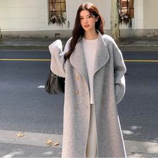 灰色双面羊绒呢子大衣女中长款2025秋冬新款高级感韩系羊毛呢外套