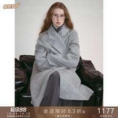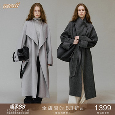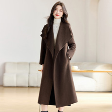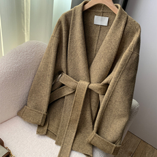 爆款纯羊毛大衣双面呢百搭休闲中长款女士系带小个子宽松羊绒毛呢