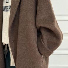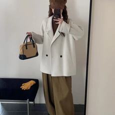 2025秋冬新韩版双面羊毛大衣女中长款宽松西装领羊绒上衣毛呢