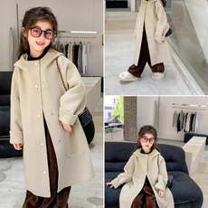 【含山羊绒】秋季连帽纯色休闲直筒中长款百搭羊毛呢女式大衣