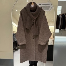 2025秋冬新款双面羊绒大衣女中长款宽松配围巾羊毛呢外套简约百搭