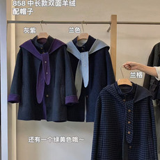 中长款双面羊绒配帽子韩系宽松休闲拼色轻奢羊毛外套小个子大衣