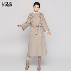 全羊毛秋冬新款十三行名媛气质设计感双面羊绒大衣中长款毛呢外套