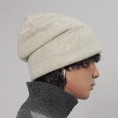 2025秋冬新款山羊绒堆堆帽男女通用卷边针织毛冷帽遮耳帽