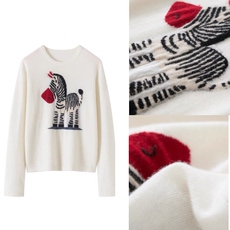 米皇秋季新款套头圆领长袖羊绒衫女休闲提花纯羊绒毛衣针织衫