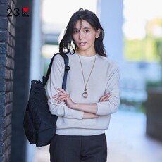 23区日系秋季通勤直筒羊绒羊毛混纺圆领短袖毛衣针织毛衫商场同款