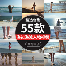 海边沙滩人物行走唯美女孩背影高清视频黄昏风景海岸实拍高清素材