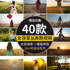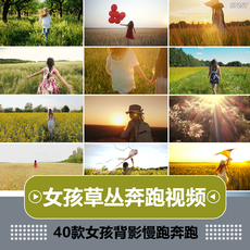 唯美女孩少女背影草丛麦田慢跑奔跑行走逆光升格实拍高清视频素材
