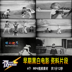 黑白电影早期马戏团表演猴子狗马美女杂技演奏骑车默剧 视频资料
